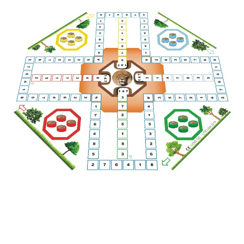 - 4 x 4 pcs Lion Cubs pawns (4 sets in different colors); available with (1) lion-shaped wooden pawns or (2) round pawns with lion-pictured stickers