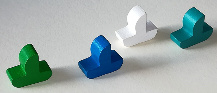 4 eriväristä venefiguuria, kaksinpelissä yhdellä kisaajalla voi olla kaksi venekuntaa